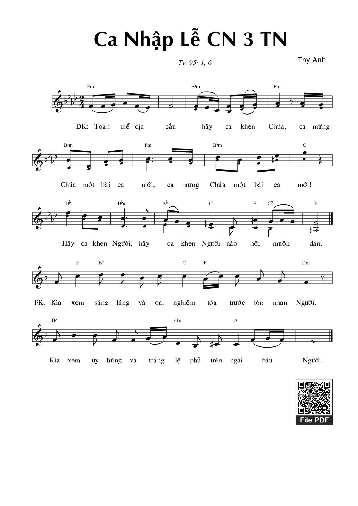 Các sheet PDF cùng tên Thánh Vịnh 95, Ca Nhập Lễ Chúa Nhật 3 Thường Niên: