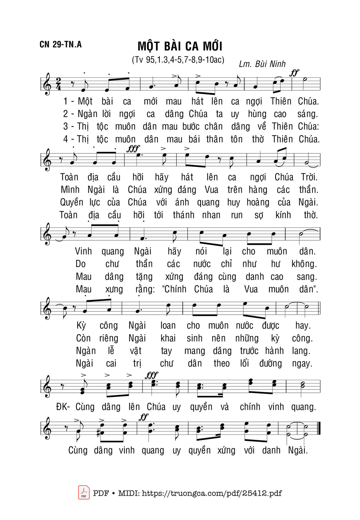 Bùi Ninh Một bài ca mới hát lên ca ngợi Thiên Chúa [PDF] [Sheet] [Lời H.A] [Mp4/Midi]