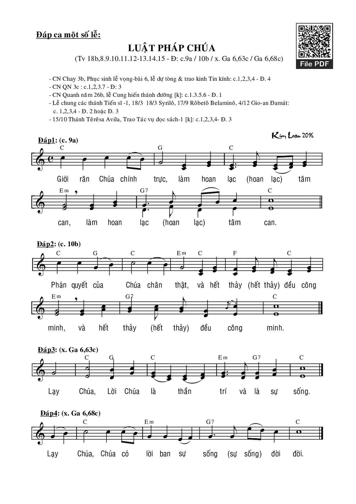 Các sheet PDF cùng tên Thánh Vịnh 18, Chúa Nhật 3C Thường Niên: