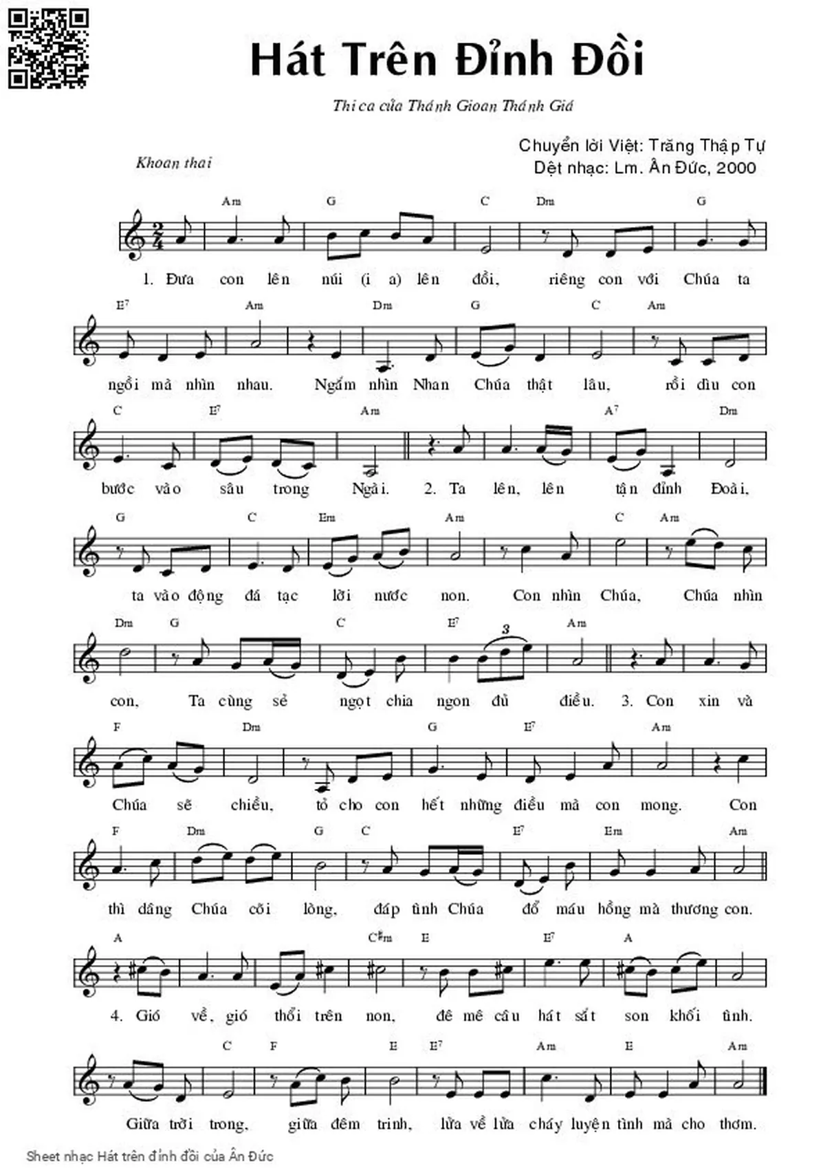 Ân Đức Đưa con lên núi í a lên đồi [PDF] [Sheet] [Lời H.A] [Mp4/Midi]