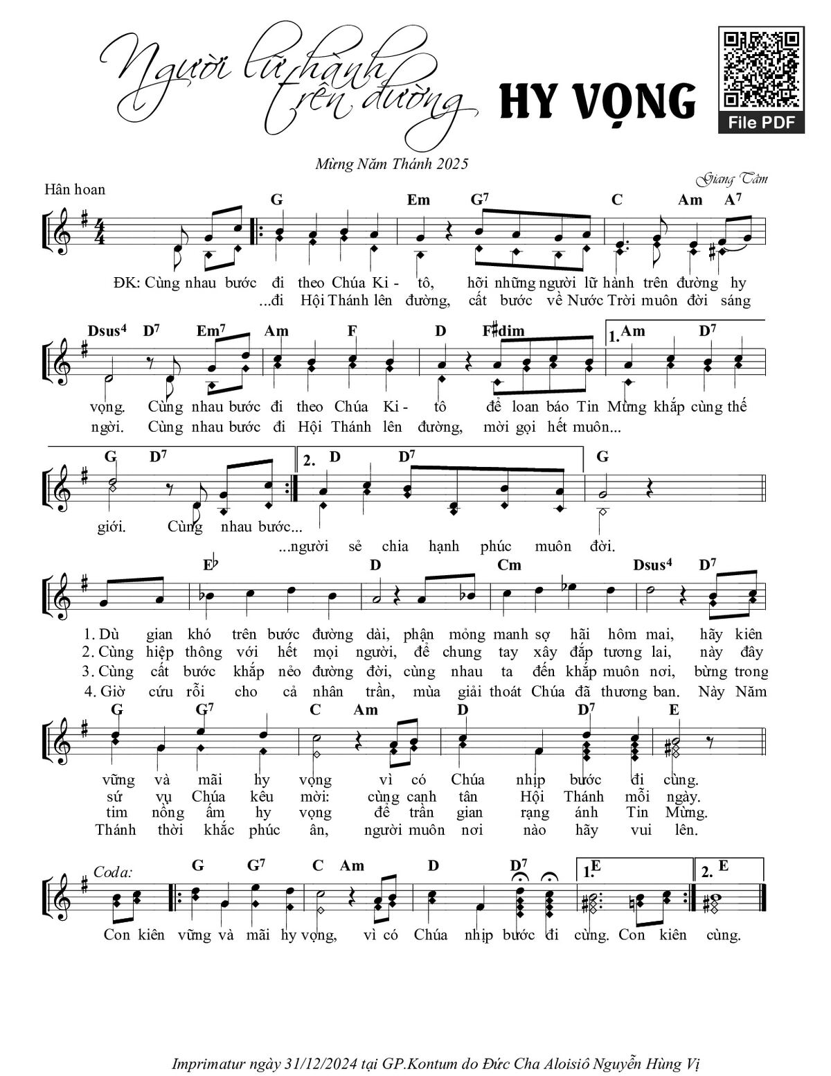 CODA. Con kiên vững và mãi hy vọng, vì có Chúa nhịp bước đi cùng. Con kiên vững và mãi hy vọng, vì có Chúa nhịp bước đi cùng