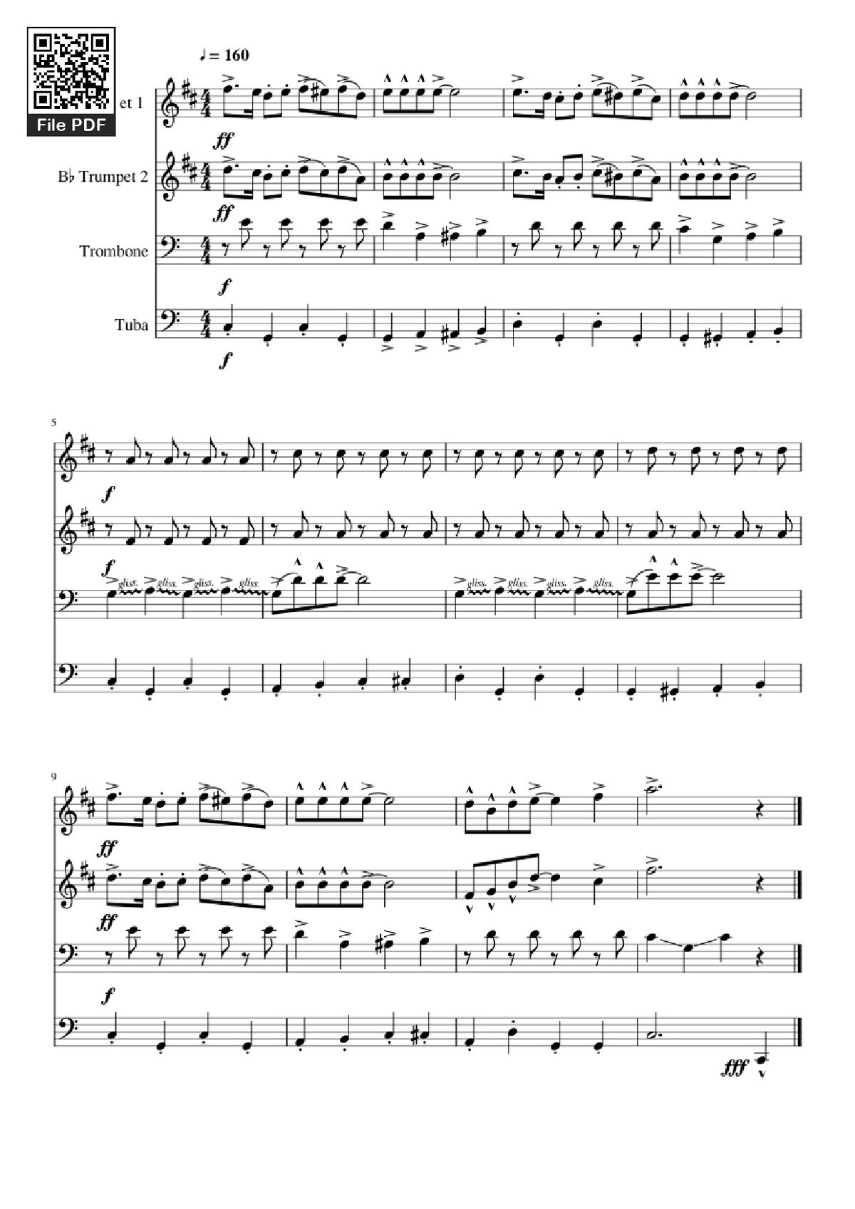 Download and print in PDF or MIDI free sheet music of looney tunes theme - Misc Cartoons for Looney Tunes Theme by Misc Cartoons arranged by DaBrown for Tuba, Trombone bass, Trumpet in b-flat (Mixed Quartet)