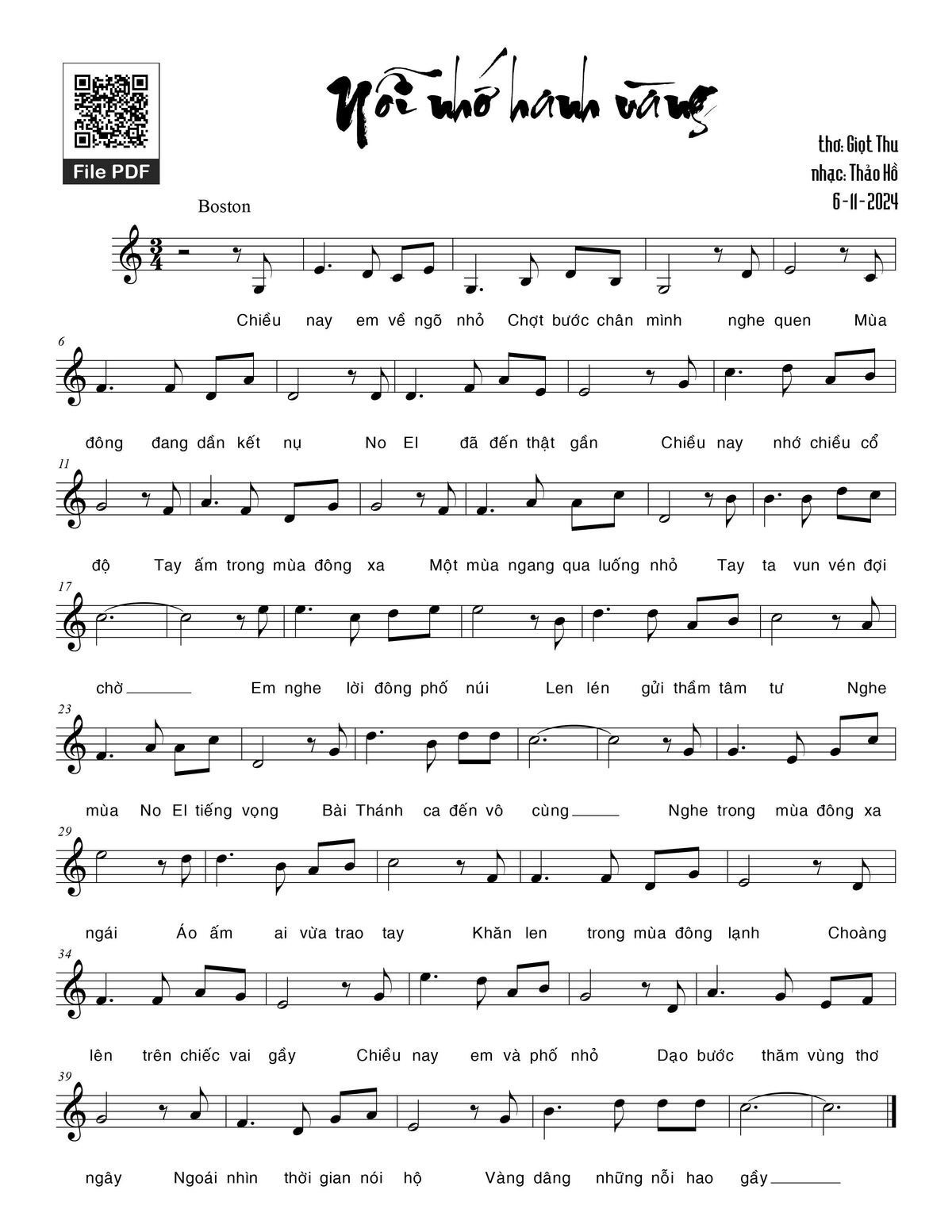 Thảo Hồ Chiều nay em về ngõ nhỏ Chợt bước chân mình nghe quen [PDF] [Sheet] [Lời H.A] [Mp4/Midi]