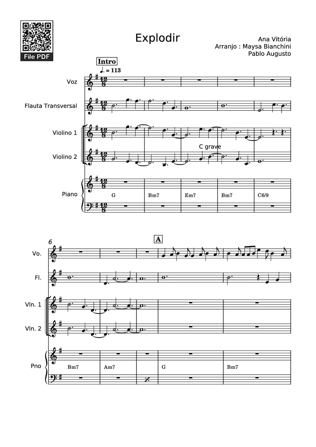 Download and print in PDF or MIDI free sheet music of Explodir - Anavitória for Explodir by Anavitória arranged by muratkazbek6 for Piano, Vocals, Flute, Violin (Mixed Ensemble)