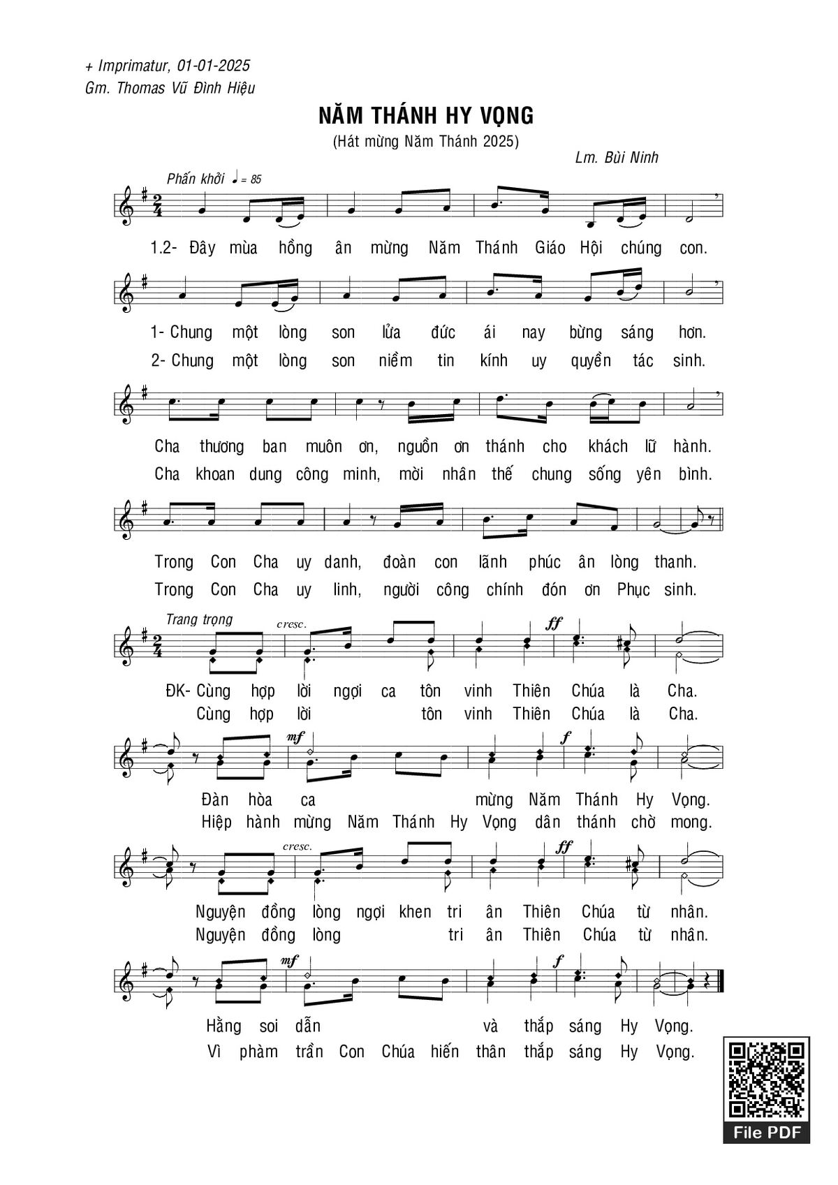 🌾 Imprimatur, Thông tin chuẩn nhận dùng trong phụng vụ Công Giáo: Hát mừng Năm thánh 2025. Imprimatur: 01.01.2025