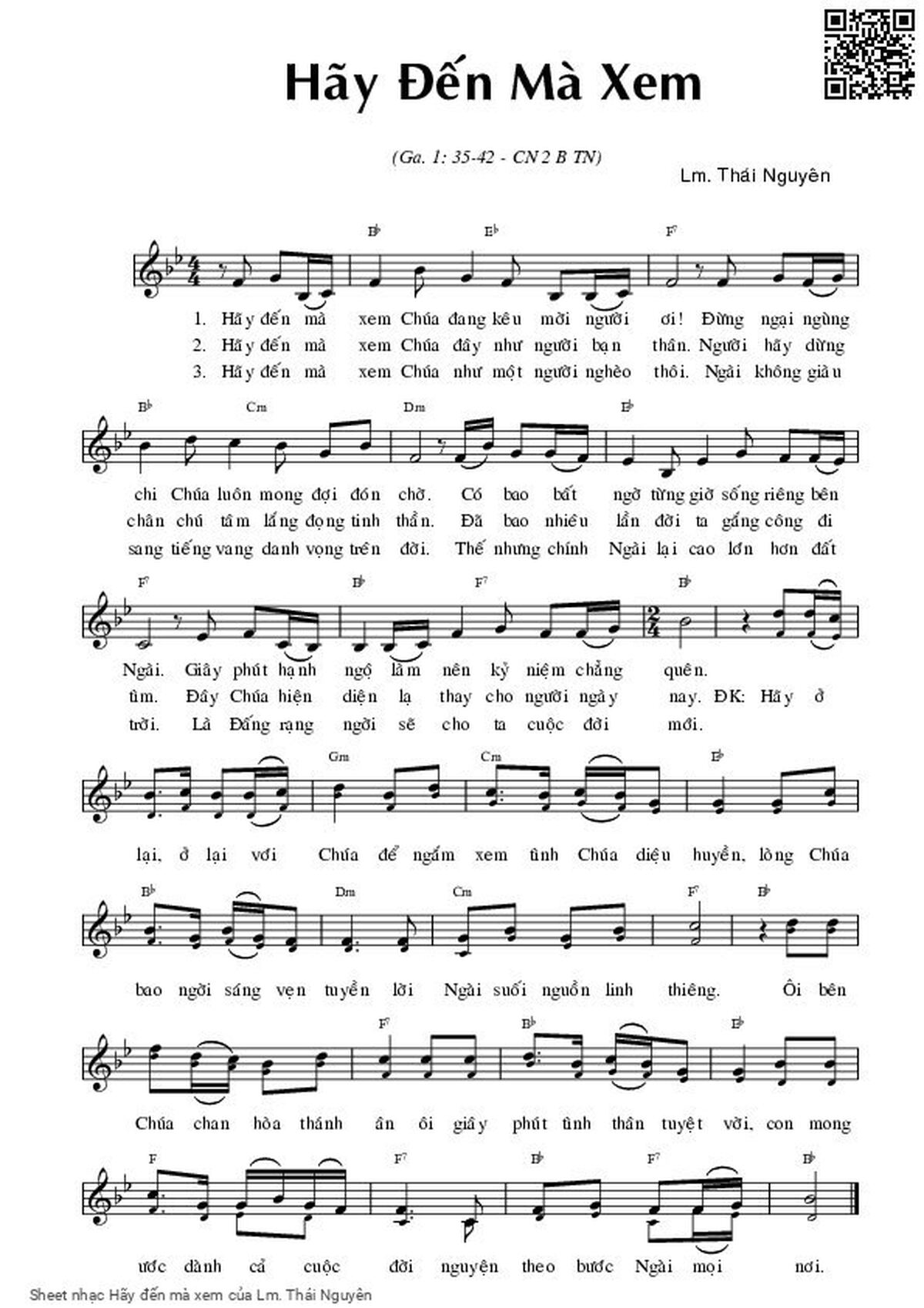 Lm. Thái Nguyên Hãy đến mà xem Chúa đang kêu mời người ơi [PDF] [Sheet] [Lời H.A] [Mp4/Midi]