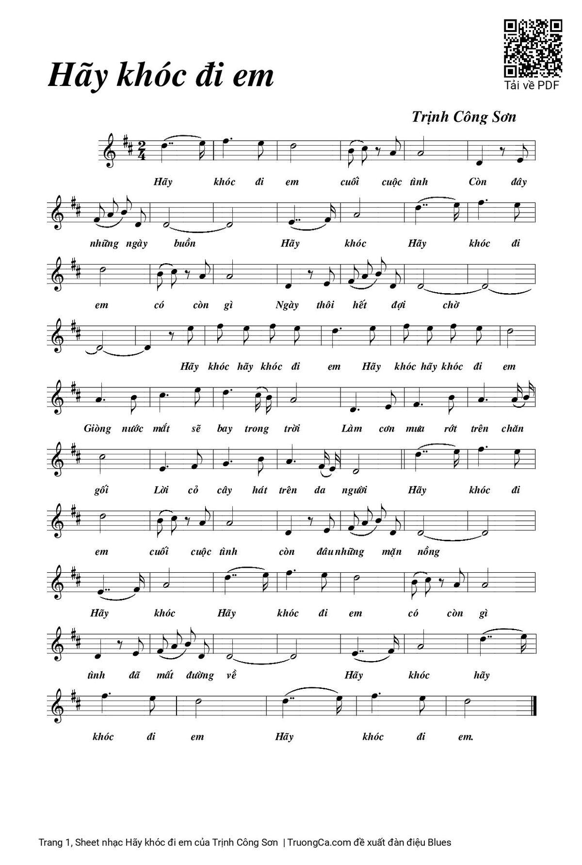 Trịnh Công Sơn Hãy khóc đi em cuối cuộc tình Còn đây những ngày buồn [PDF] [Sheet] [Lời H.A] [Mp4/Midi]