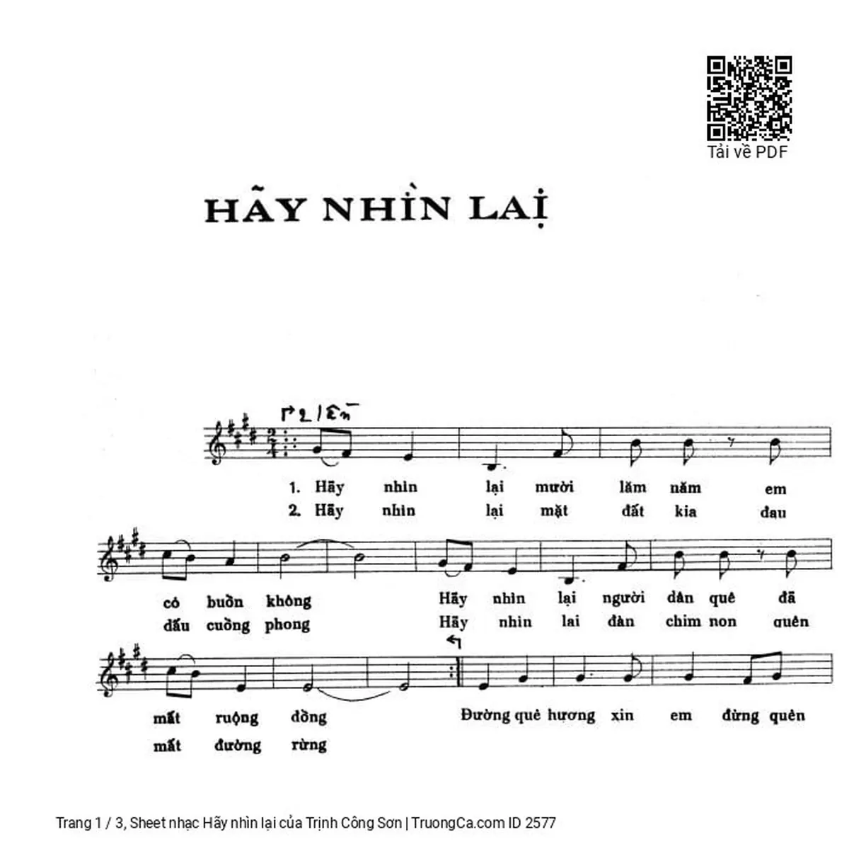 Trịnh Công Sơn Hãy nhìn lại mười lăm năm em có buồn không [PDF] [Sheet] [Lời H.A] [Mp4/Midi]