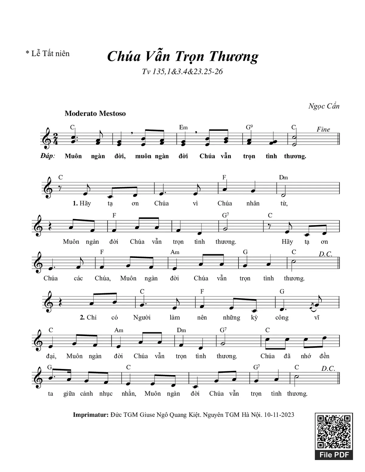Ngọc Cẩn Muôn ngàn đời muôn ngàn đời Chúa vẫn trọn tình thương [PDF] [Sheet] [Lời H.A] [Mp4/Midi]
