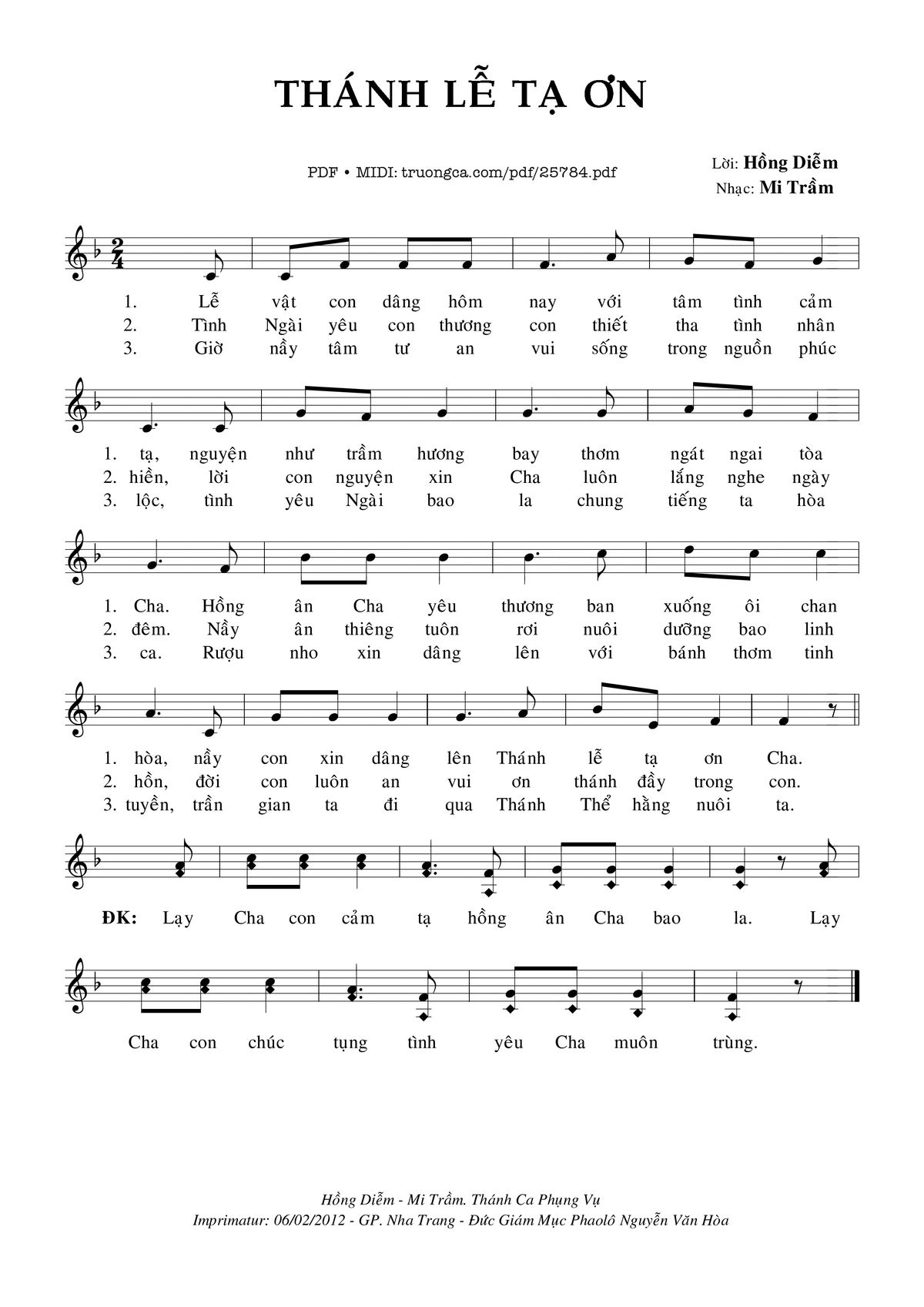 Mi Trầm Lễ vật con dâng hôm nay với tâm tình cảm tạ [PDF] [Sheet] [Lời H.A] [Mp4/Midi]