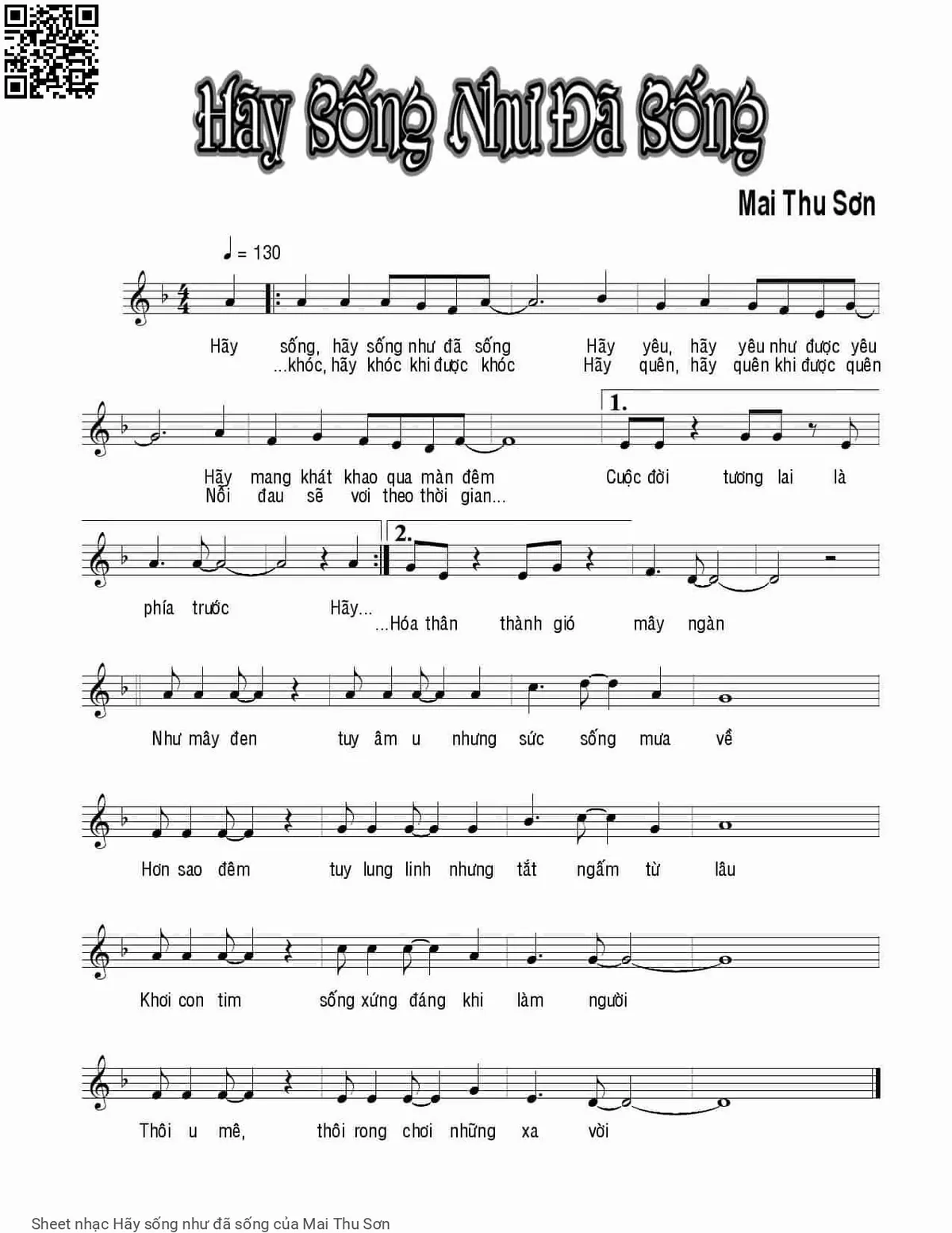 Mai Thu Sơn Hãy sống hãy sống như đã sống [PDF] [Sheet] [Lời H.A] [Mp4/Midi]