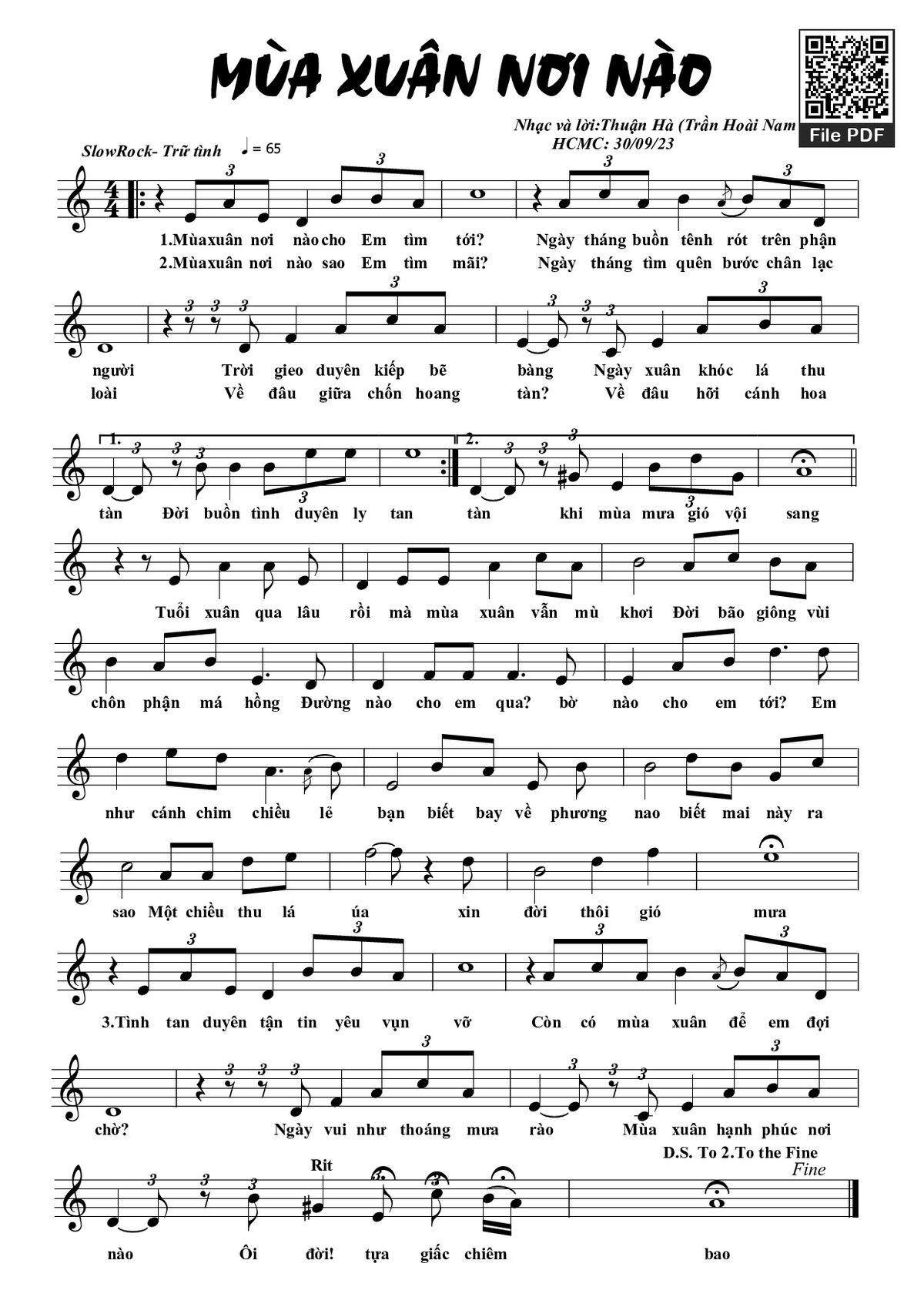 Thuận Hà Mùa xuân nơi nào cho Em tìm tới Ngày tháng buồn tênh rót trên phận người [PDF] [Sheet] [Lời H.A] [Mp4/Midi]