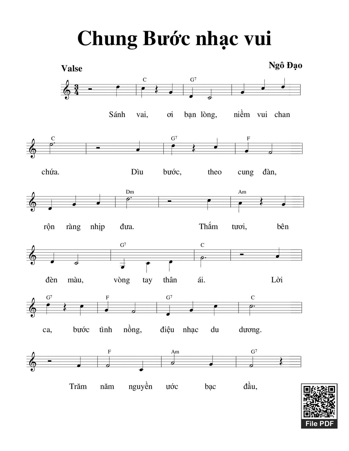 Ngô Đạo Sánh vai ơi bạn lòng niềm vui chan chứa Dìu bước theo cung đàn [PDF] [Sheet] [Lời H.A] [Mp4/Midi]