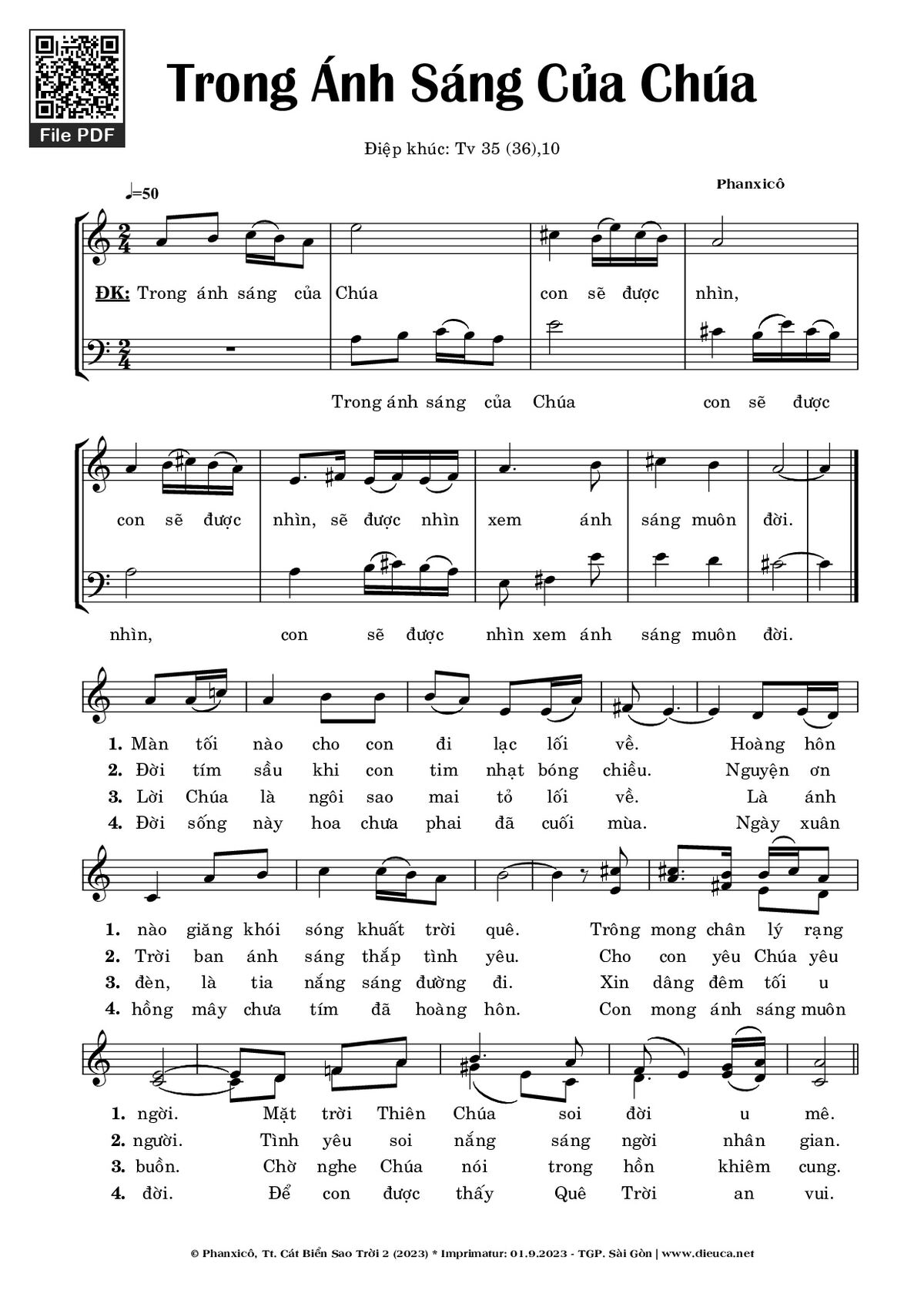 Điệp khúc: Trong ánh sáng của Chúa con sẽ được nhìn,