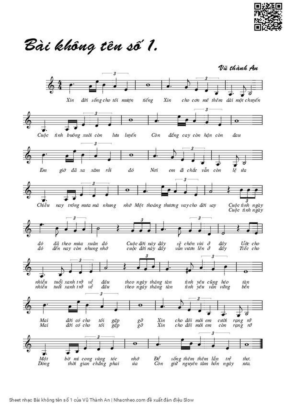 Vũ Thành An Xin đời sống cho tôi mượn tiếng Xin cho cơn mê thêm dài một chuyến [PDF] [Sheet] [Lời H.A] [Mp4/Midi]