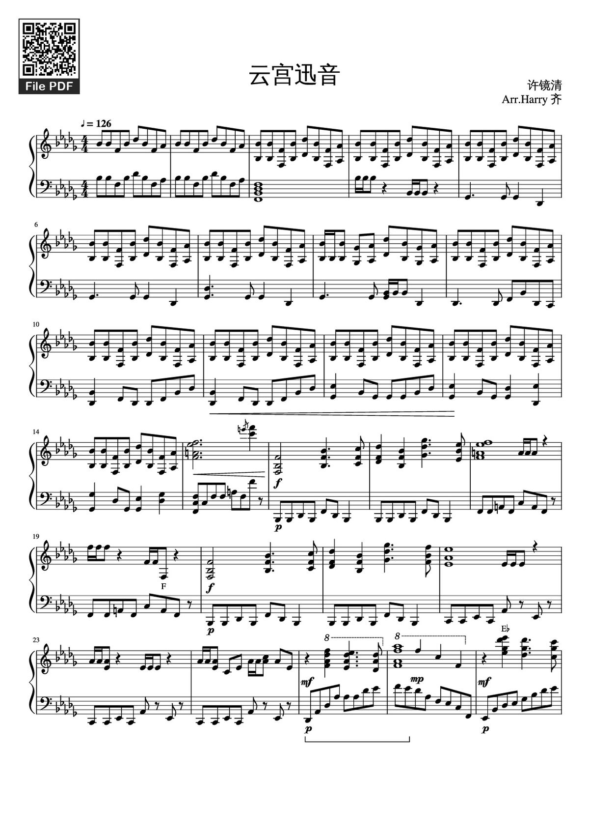 Download and print in PDF or MIDI free sheet music of 云宫迅音 - 许镜清 for 云宫迅音 by 许镜清 arranged by SenkoKitsune for Piano (Solo)