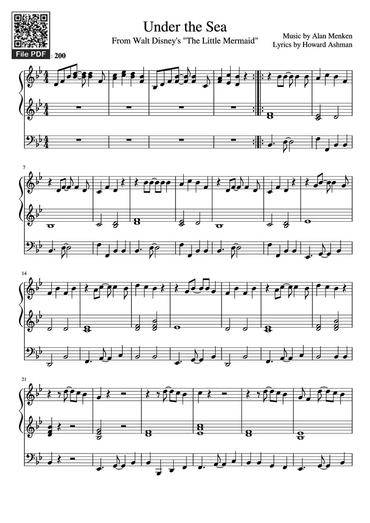 Download and print in PDF or MIDI free sheet music of Under The Sea (from The Little Mermaid) - Alan Menken for Under The Sea (From The Little Mermaid) by Alan Menken arranged by summerpenguin12 for Piano (Solo)