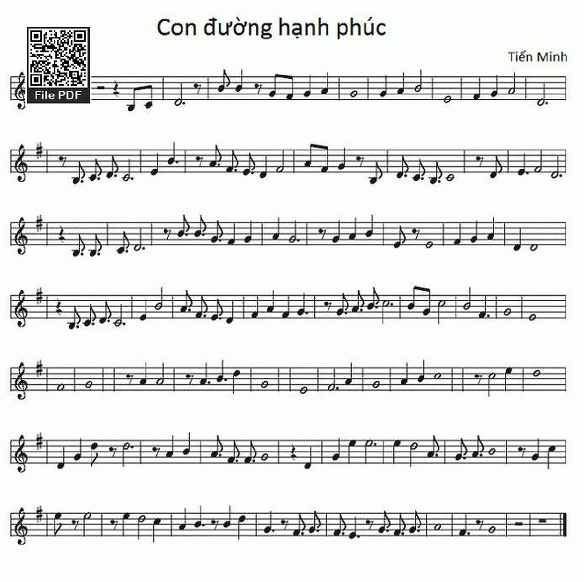 Sheet nhạc có nốt Con Đường Hạnh Phúc của nhạc sĩ Tiến Minh và file PDF nốt nhạc đăng lên đây nhằm giúp các bạn xướng âm cho đúng nốt và hát thêm hay, chỉ mang tính chất tham khảo, không có mục đích thương mại. Bản quyền thuộc về tác giả và tổ chức nắm bản quyền, Truongca.com không giữ bất kỳ bản quyền của nội dung nào cả. Các bạn có thể tải về bản PDF chất lượng cao, gồm khuông nhạc có nốt với đường link file PDF bên trên.