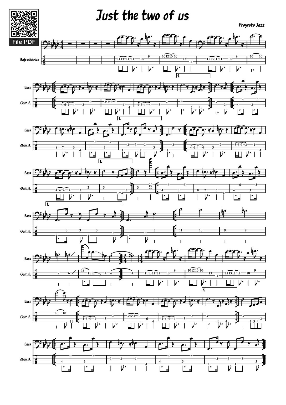 Phần đàn mẫu Just the two of us Guitar TAB (Proyecto Jazz) được nhúng từ Youtube, Musescore hoặc link ngoài và chịu sự kiểm soát bản quyền của bên thứ ba đó, vì vậy có thể bị xóa hoặc chèn quảng cáo bất kỳ lúc nào. Nếu bạn không nghe - xem được phần đàn mẫu hát mẫu tức là đã bị Youtube/Musescore kiểm soát.