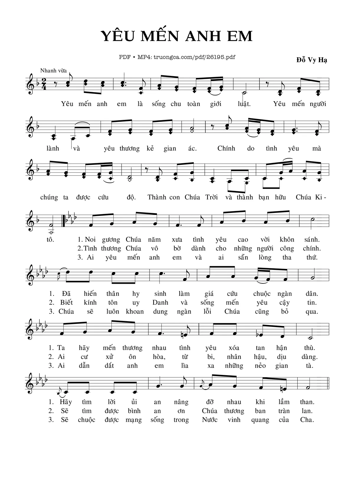 Đỗ Vy Hạ Yêu mến anh em là sống chu toàn giới luật [PDF] [Sheet] [Lời H.A] [Mp4/Midi]