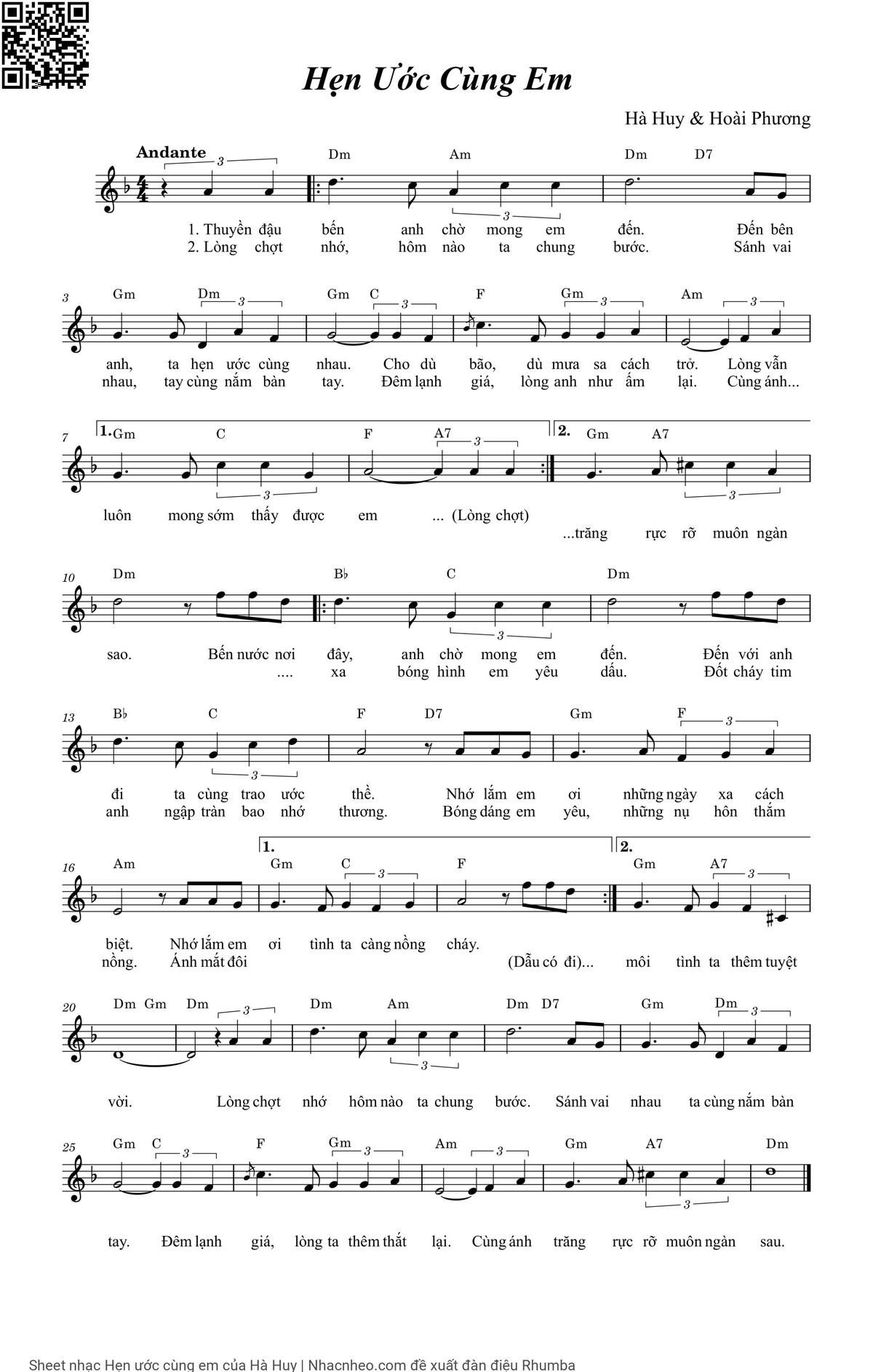 Phần nghe hát Hẹn ước cùng em (Hà Huy) được nhúng từ Youtube, Musescore hoặc link ngoài và chịu sự kiểm soát bản quyền của bên thứ ba đó, vì vậy có thể bị xóa hoặc chèn quảng cáo bất kỳ lúc nào. Nếu bạn không nghe - xem được ca sĩ hát tức là đã bị Youtube hoặc Musescore kiểm soát.