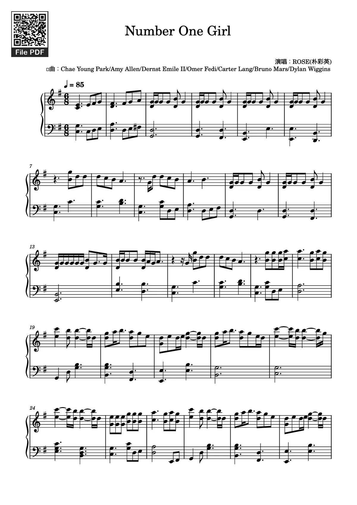 Download and print in PDF or MIDI free sheet music of Number One Girl - ROSE - Jessy Chen for Number One Girl - ROSE arranged by Jessy Chen for Piano (Solo)