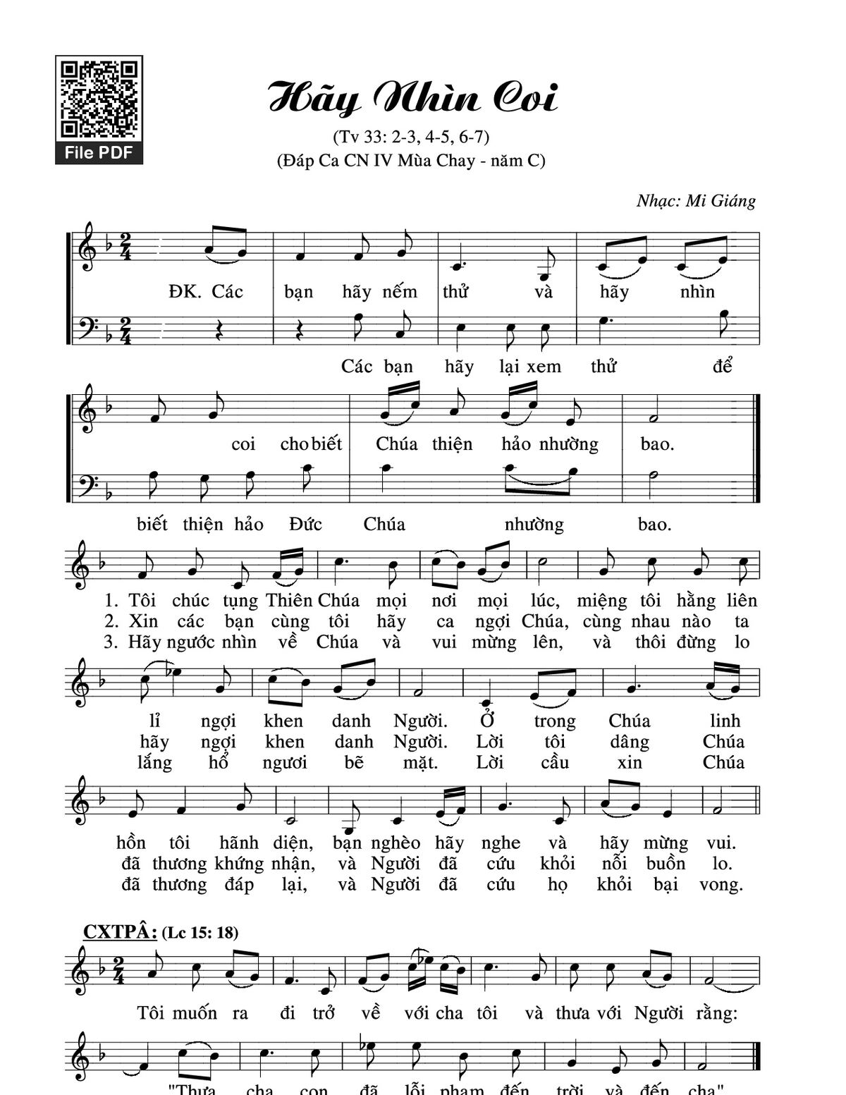 Các sheet PDF cùng tên Thánh Vịnh 33, Hãy Nhìn Coi: