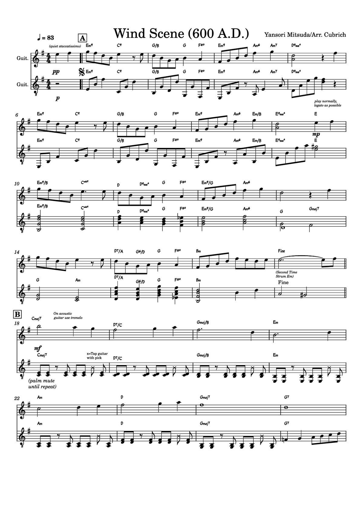Download and print in PDF or MIDI free sheet music of Wind Scene (600 AD) - Yasunori Mitsuda for Wind Scene (600 Ad) by Yasunori Mitsuda arranged by bcubrich for Guitar (String Duet)