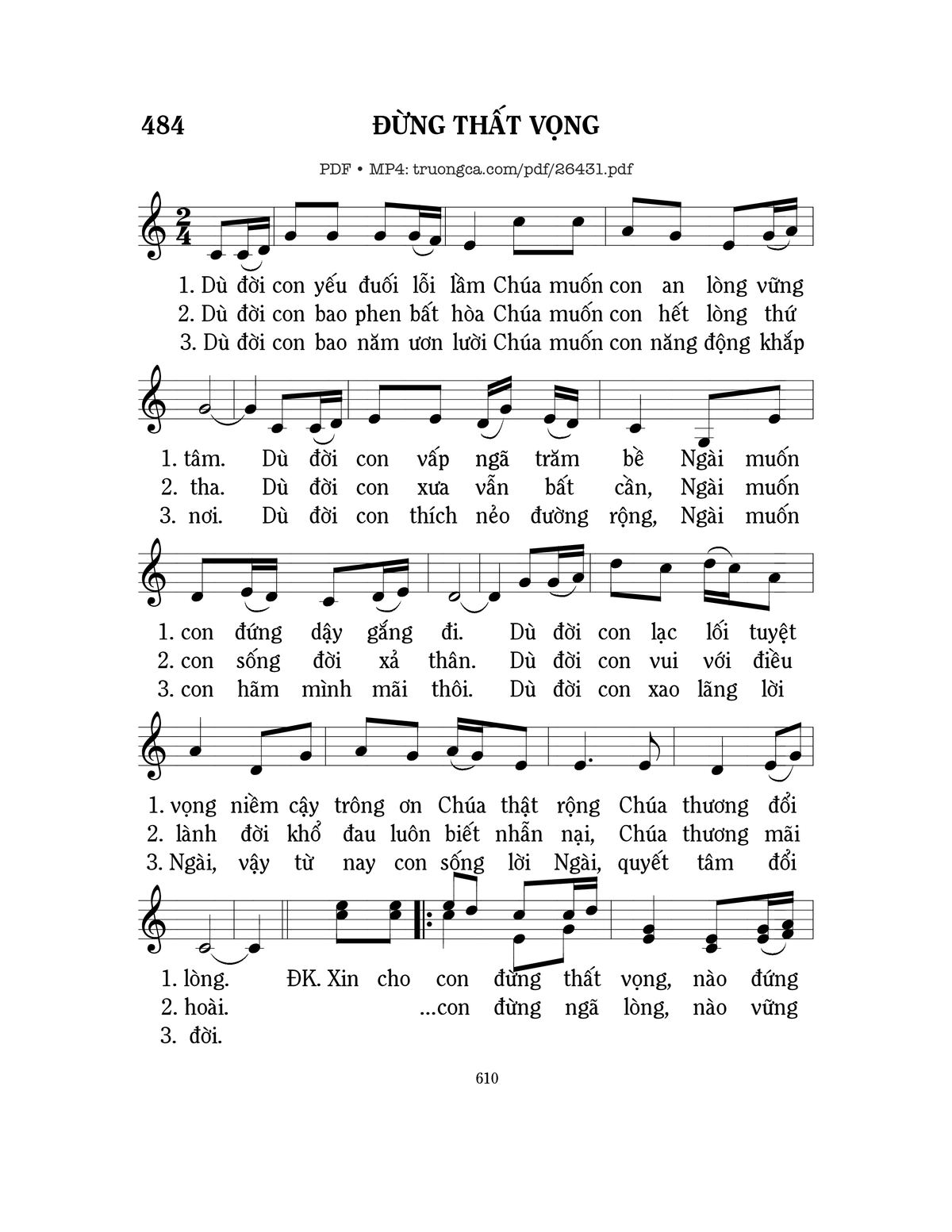 Xin cho con đừng ngã lòng, nào vững tin ơn Chúa tác sinh, đời đổi thay con sống quên mình.