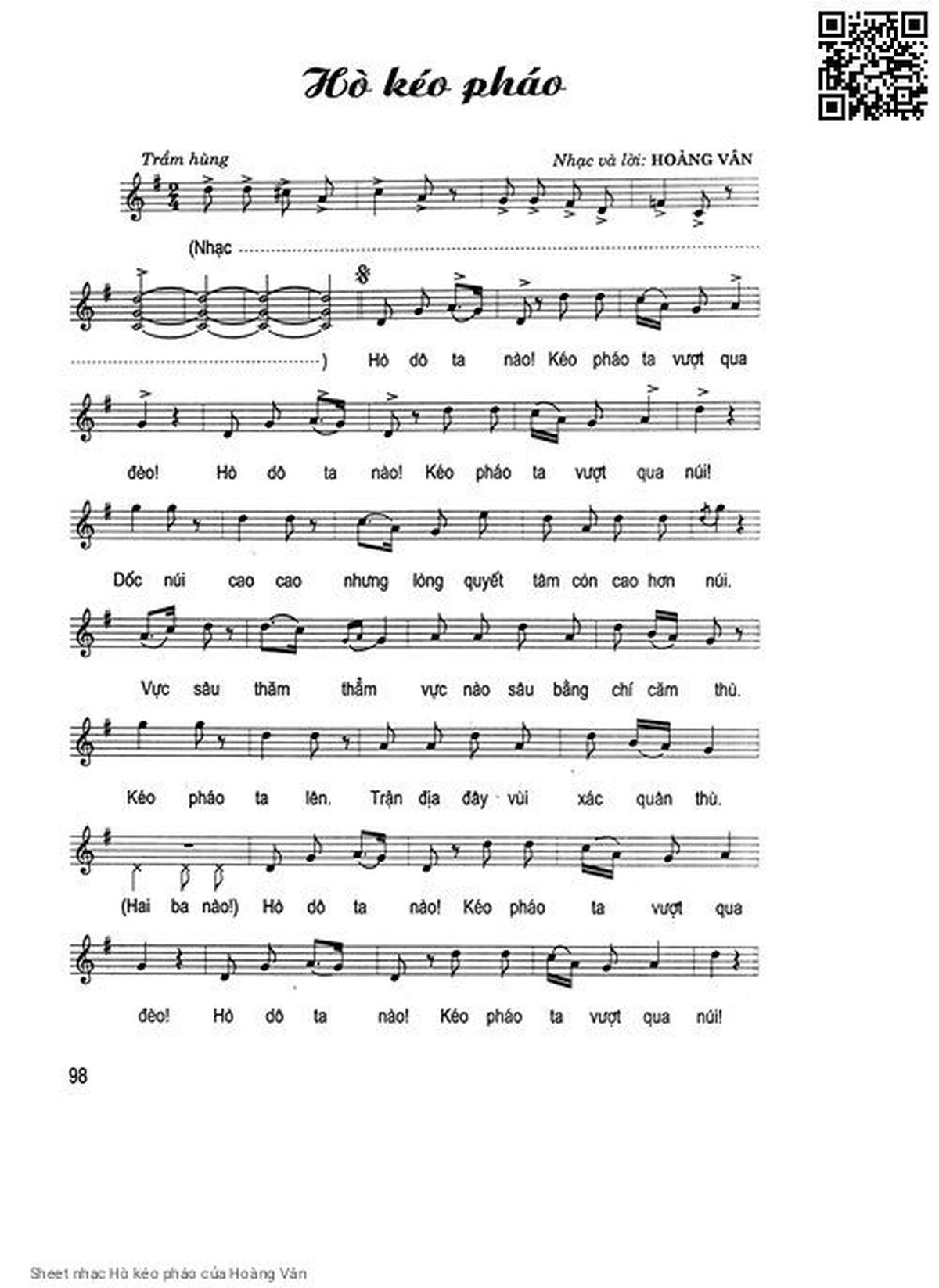 Hoàng Vân Into Hò dô ta nào Kéo pháo ta vượt qua đèo [PDF] [Sheet] [Lời H.A] [Mp4/Midi]
