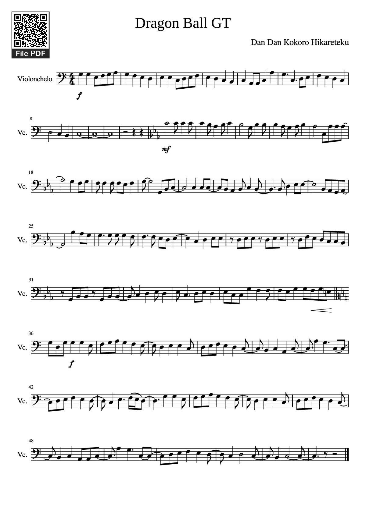 Download and print in PDF or MIDI free sheet music of Dragon Ball - Dan Dan Kokoro Hikareteku for Dragon Ball by Dan Dan Kokoro Hikareteku arranged by gerentemexico for Cello (Solo)