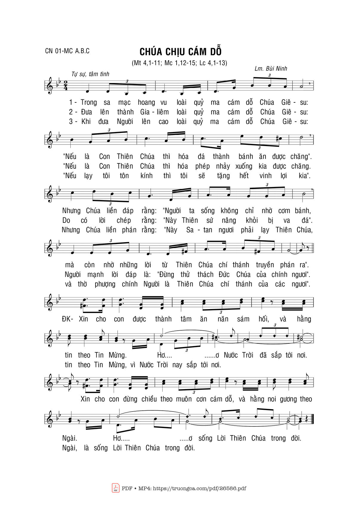 Bùi Ninh Hiệp Lễ Chúa Nhật C Mùa Chay Trong sa mạc hoang vu loài quỷ ma cám dỗ Chúa Giêsu [PDF] [Sheet] [Lời H.A] [Mp4/Midi]