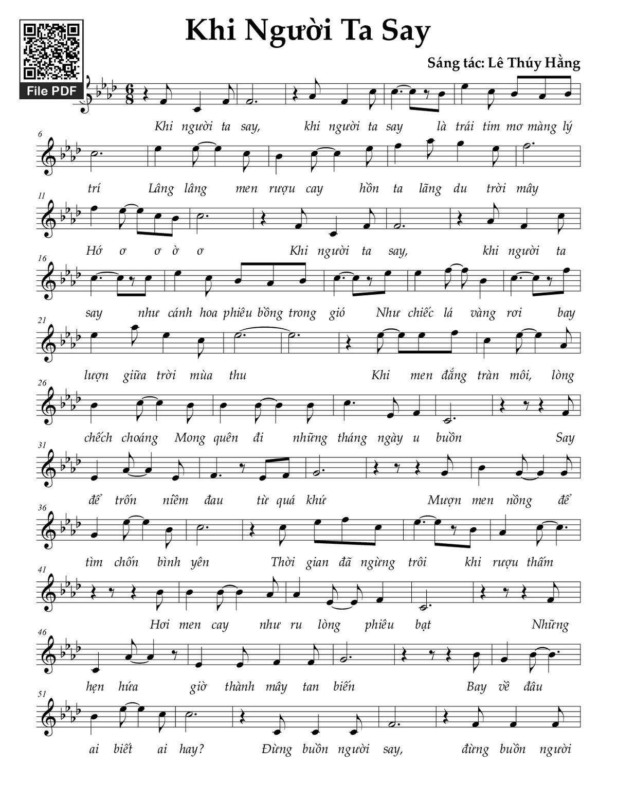 Lê Thúy Hằng Khi người ta say Khi người ta say là trái tim mơ màng lý trí [PDF] [Sheet] [Lời H.A] [Mp4/Midi]