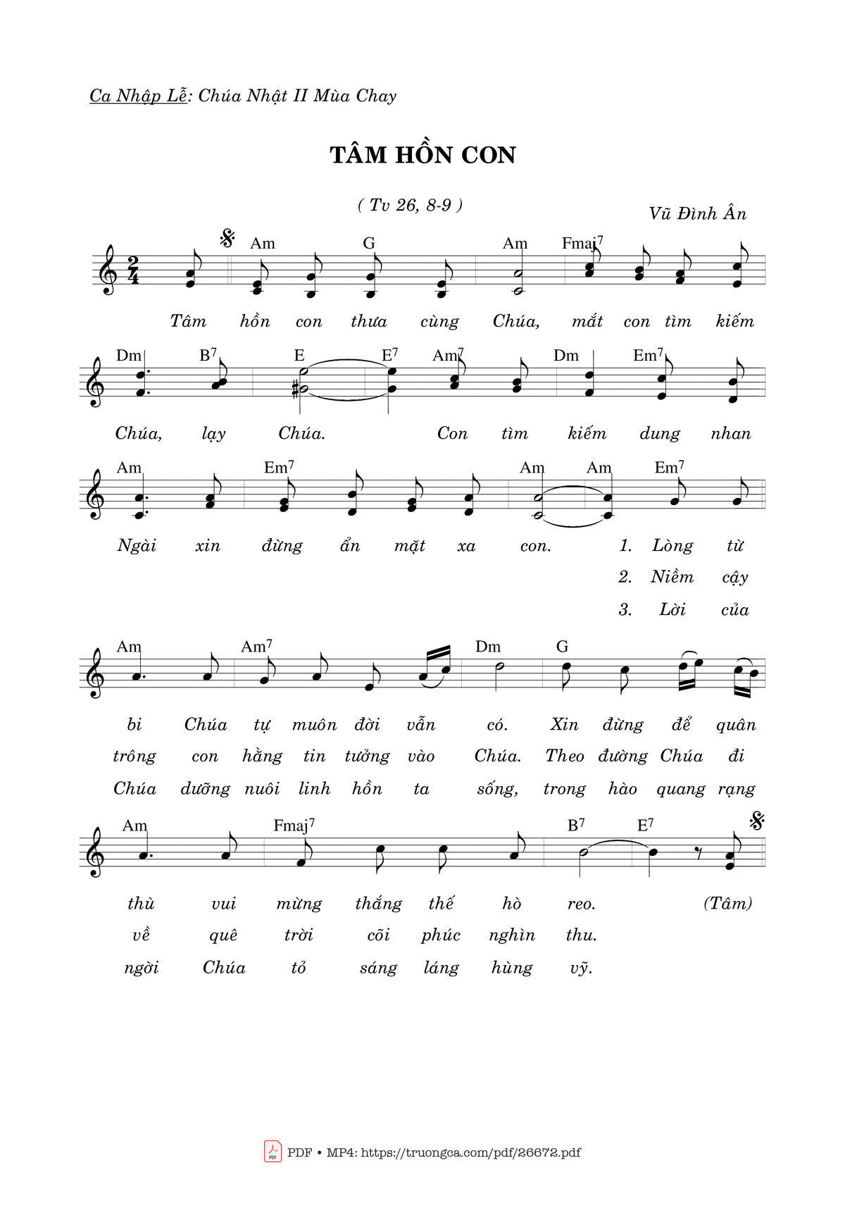 Vũ Đình Ân Nhập Lễ Chúa Nhật Mùa Chay Tâm hồn con thưa cùng Chúa [PDF] [Sheet] [Lời H.A] [Mp4/Midi]