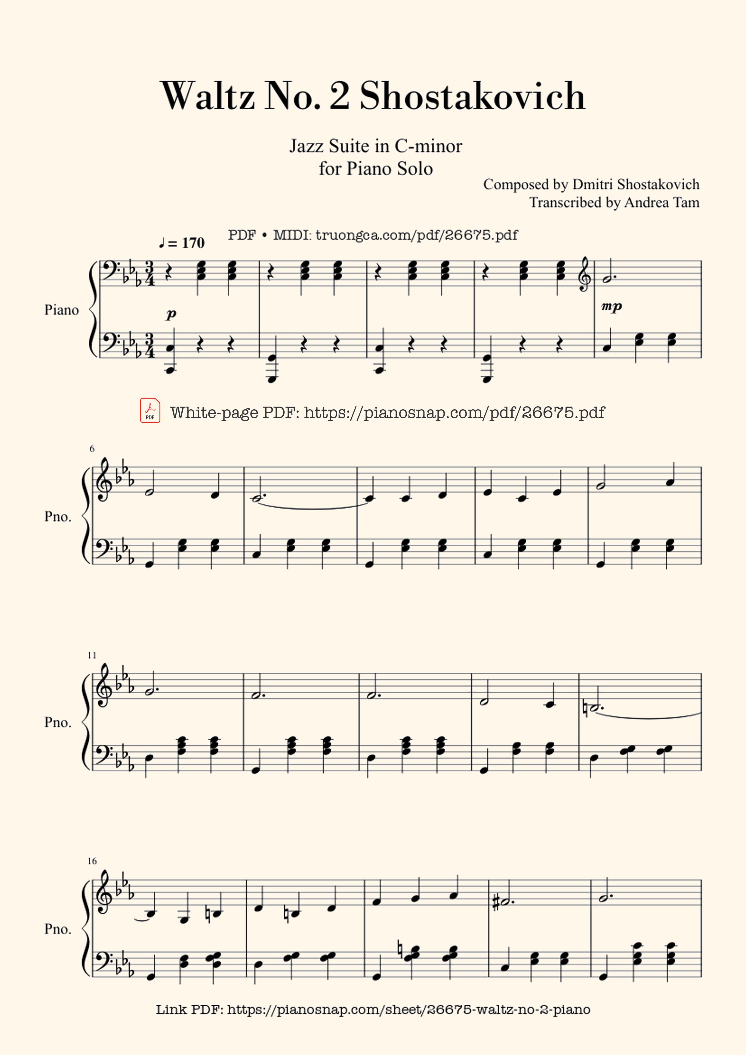 🎹 Composed by Dmitri Shostakovich Transcribed by Andrea Tam [PDF] [Sheet] [Lời H.A] [Mp4/Midi]