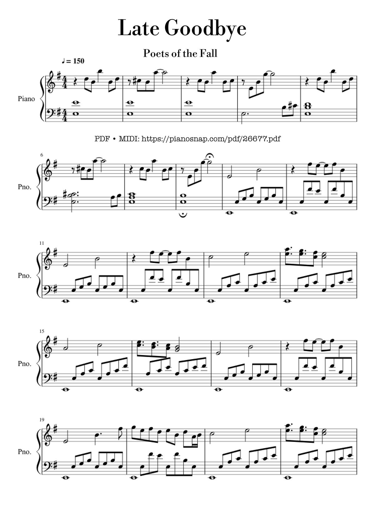 Learn how to play Late goodbye – Poets of the Fall (Max Payne 2) on the piano.