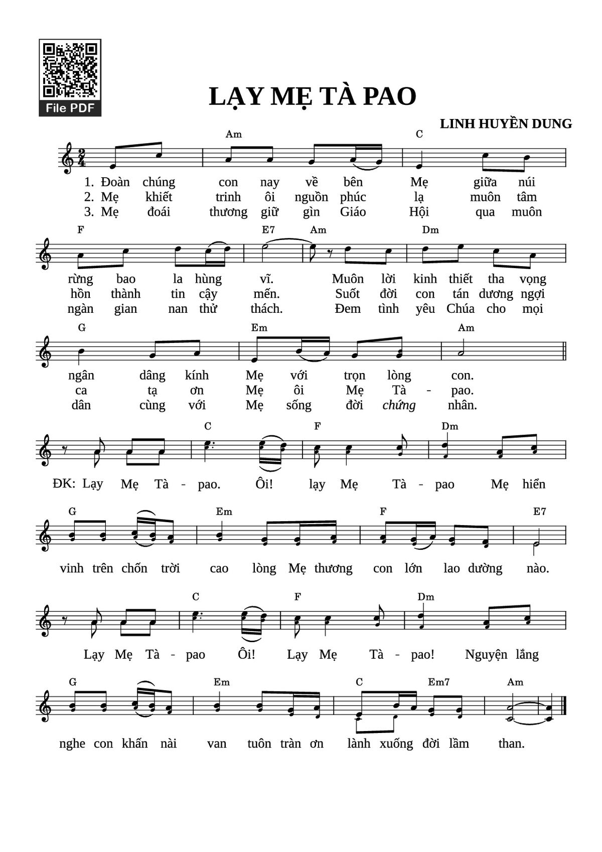 Các sheet PDF tương tự LẠY MẸ TÀ PAO: