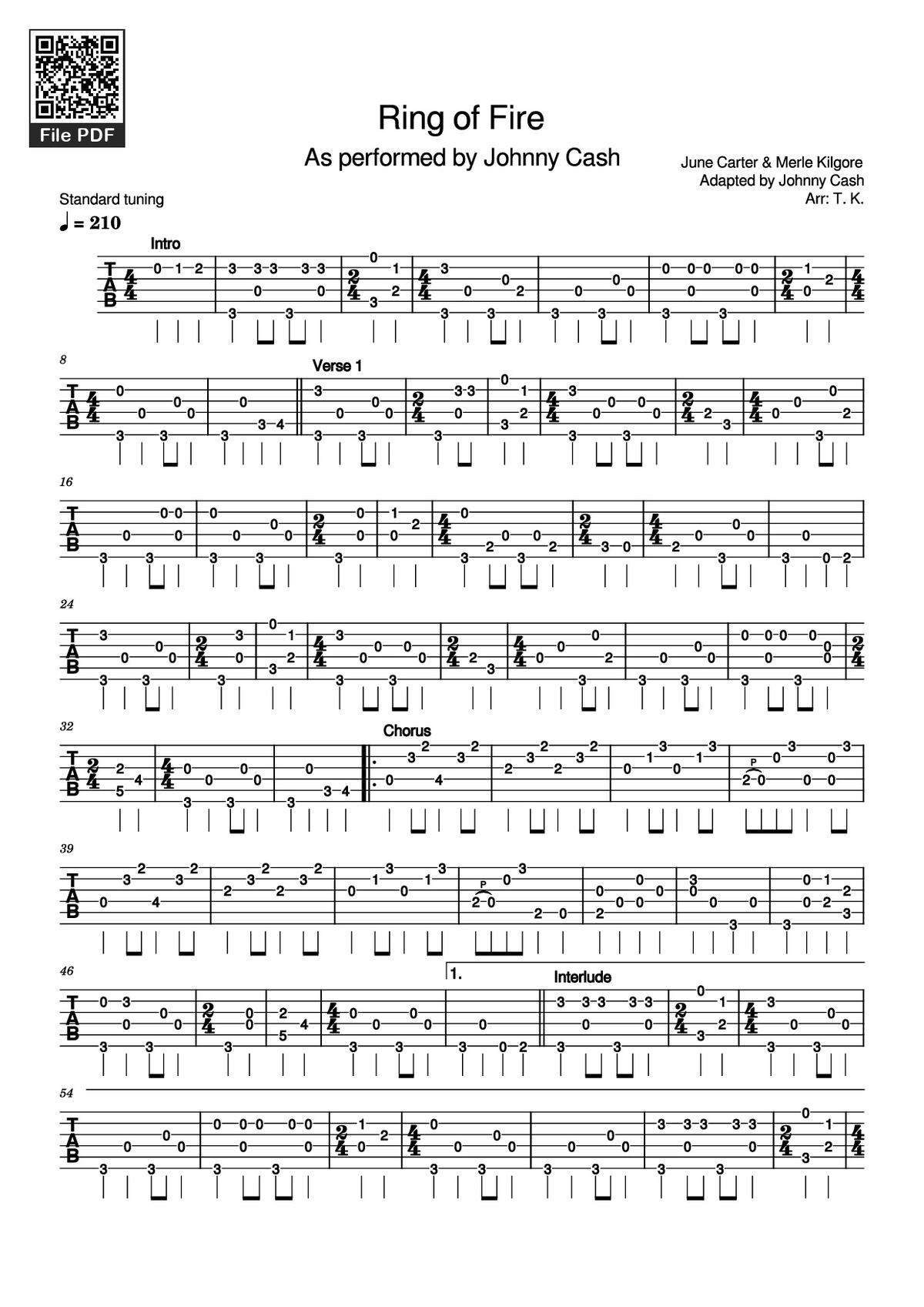 Các sheet PDF tương tự Ring of Fire Guitar TAB: