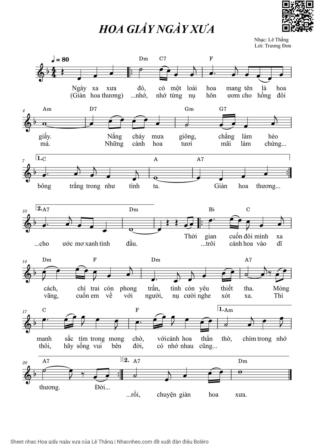 Phần nghe hát Hoa giấy ngày xưa (Lê Thắng) được nhúng từ Youtube, Musescore hoặc link ngoài và chịu sự kiểm soát bản quyền của bên thứ ba đó, vì vậy có thể bị xóa hoặc chèn quảng cáo bất kỳ lúc nào. Nếu bạn không nghe - xem được ca sĩ hát tức là đã bị Youtube hoặc Musescore kiểm soát.