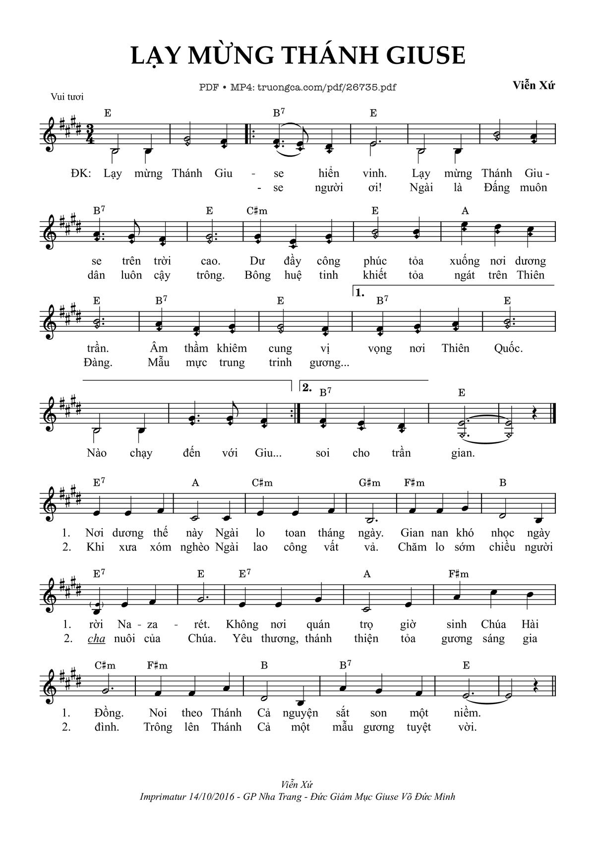 Viễn Xứ Lạy Mừng Thánh Giuse hiển vinh Lạy Mừng Thánh Giuse trên trời cao [PDF] [Sheet] [Lời H.A] [Mp4/Midi]