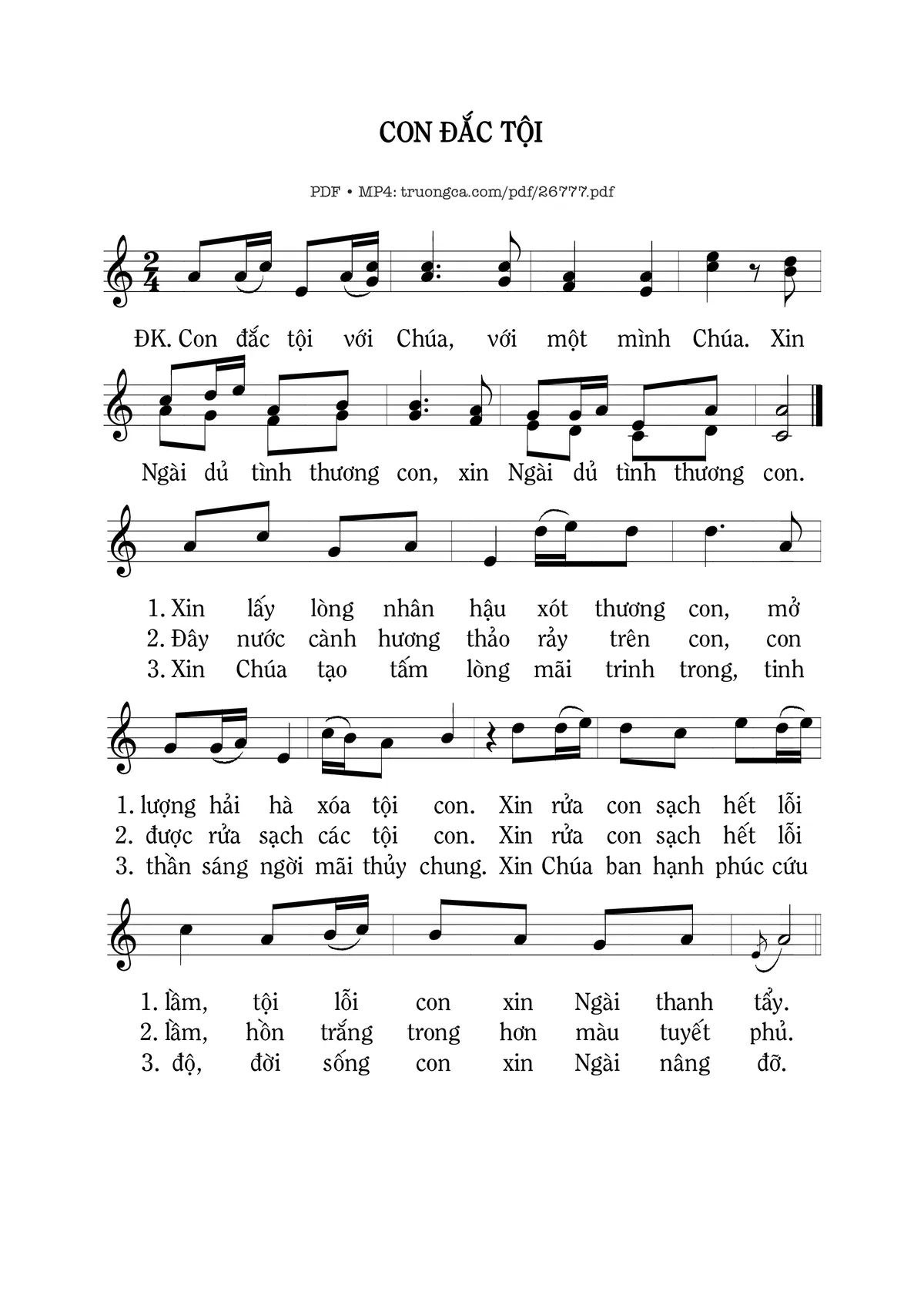 Điệp khúc. Con đắc tộ với Chúa, với một mình Chúa. xin Ngài dủ tình thương con, xin Ngài dủ tình thương con.