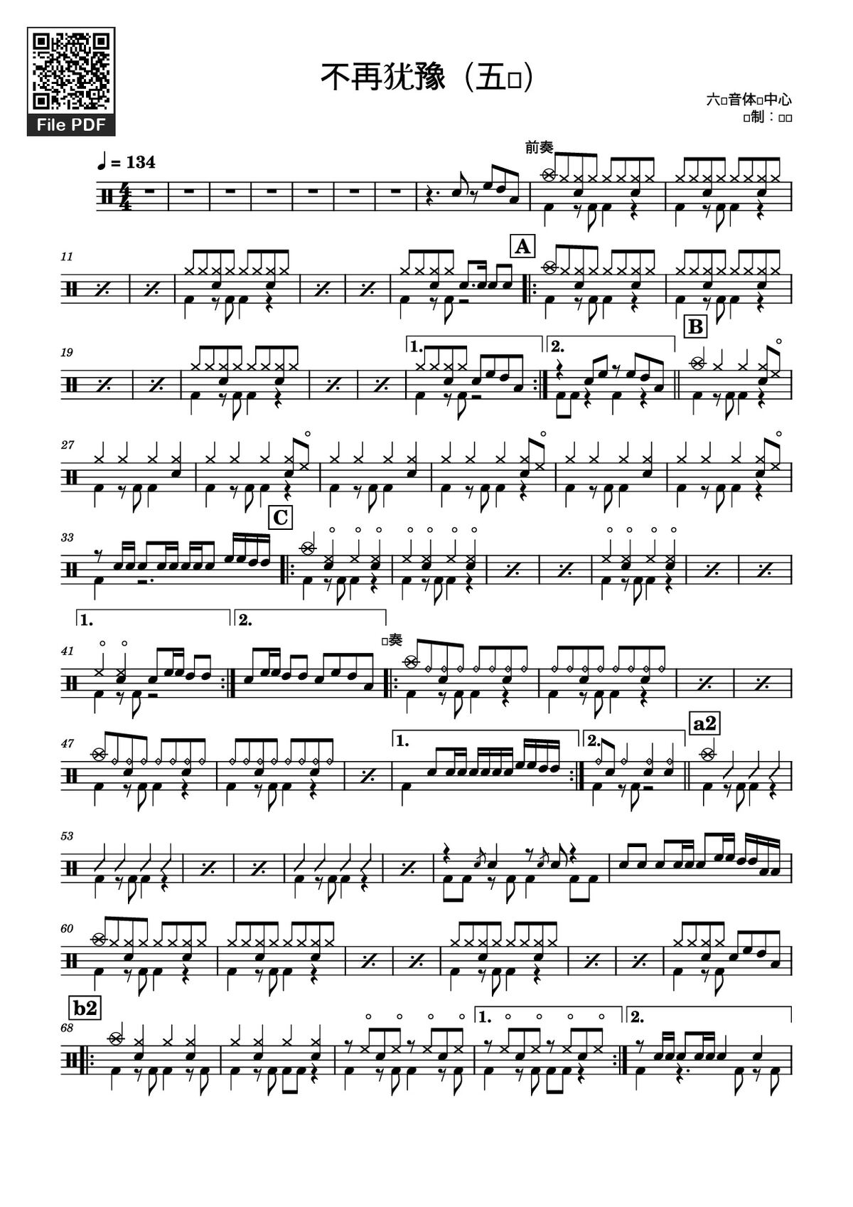 Download and print in PDF or MIDI free sheet music of 5级、不再犹豫 - a18565338809 for 5级、不再犹豫 arranged by a18565338809 for Drum group (Solo)