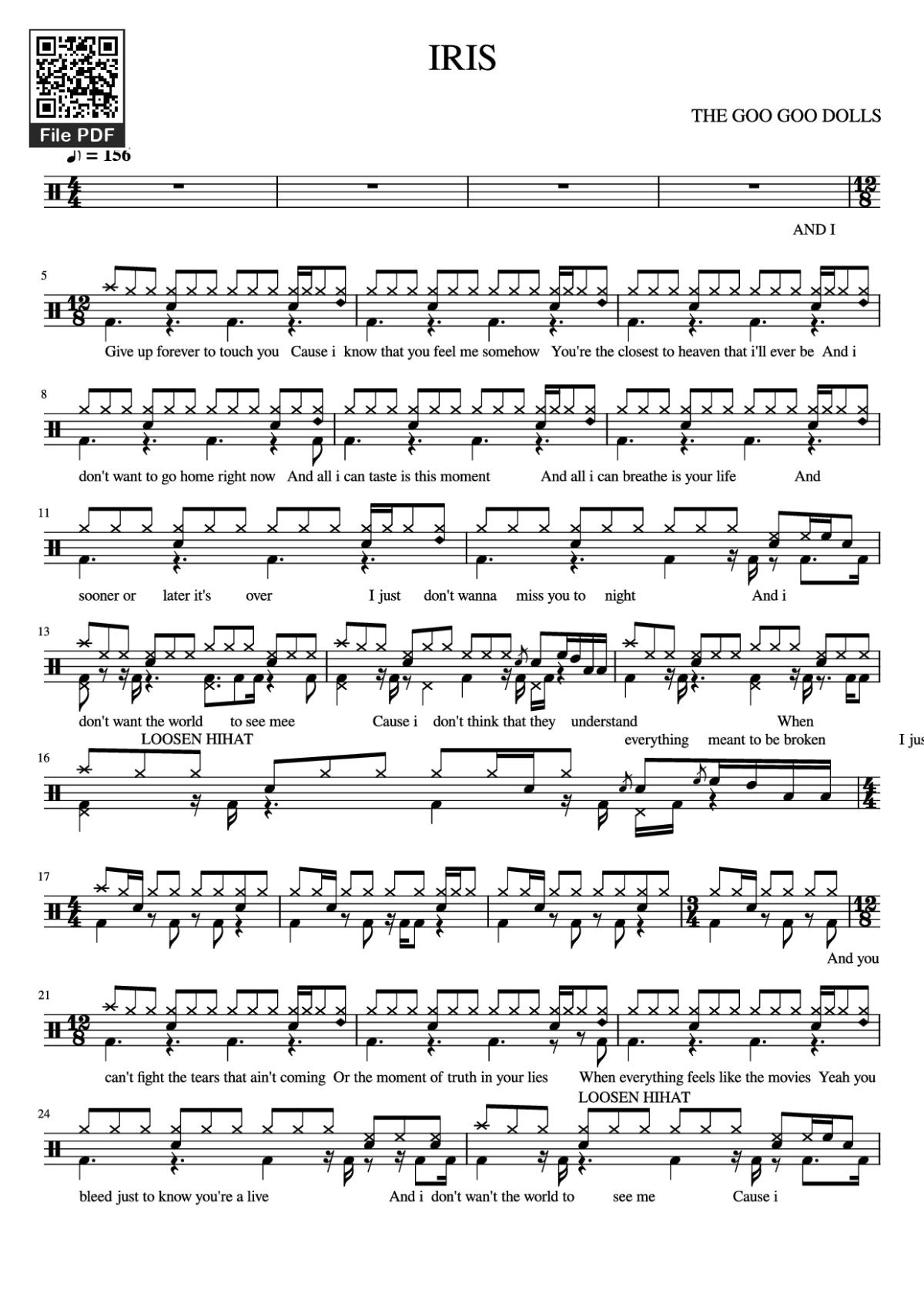 Download and print in PDF or MIDI free sheet music of iris - The Goo Goo Dolls for Iris by The Goo Goo Dolls arranged by luc.braet for Drum group (Solo)