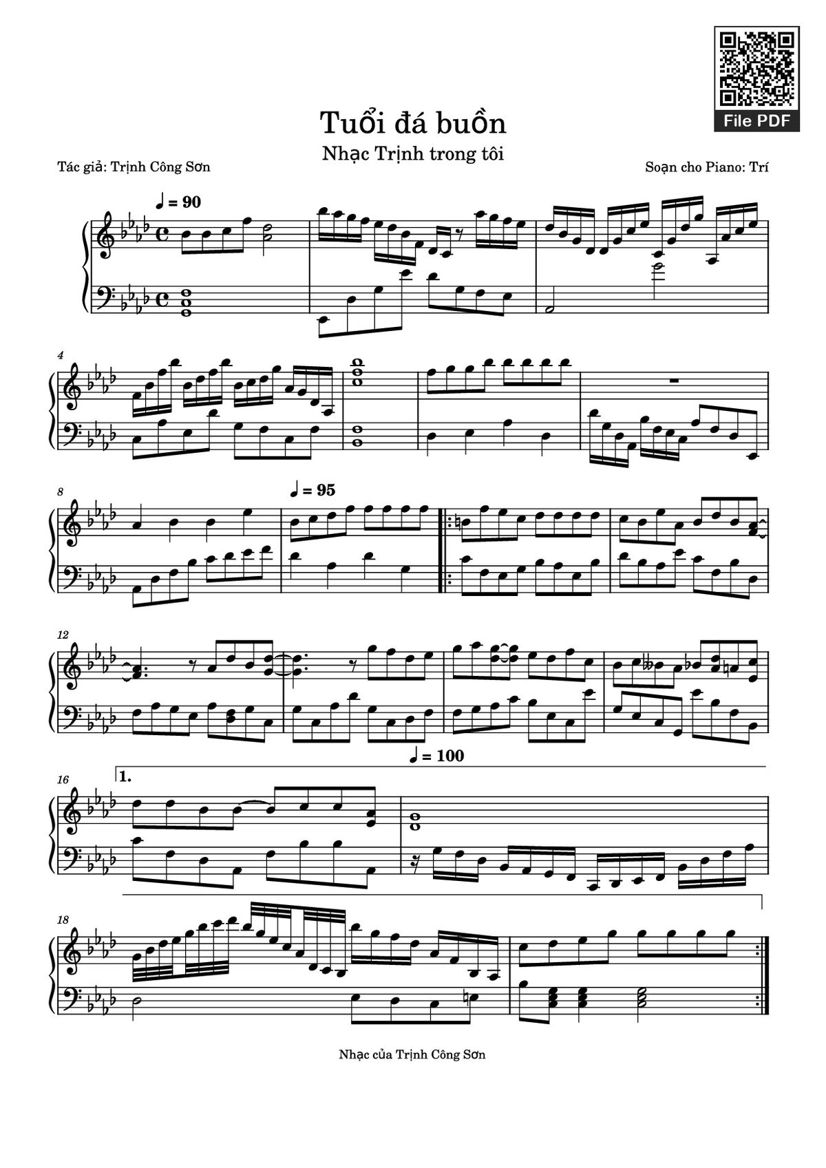 Download and print in PDF or MIDI free sheet music of Tuổi Đá Buồn - ngô minh trí for Tuổi Đá Buồn by ngô minh trí arranged by tri21 for Piano (Solo)