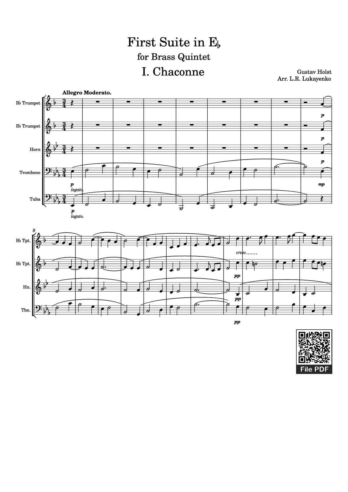 Download and print in PDF or MIDI free sheet music for First Suite in Eb (Holst) - for Brass Quintet arranged by L.