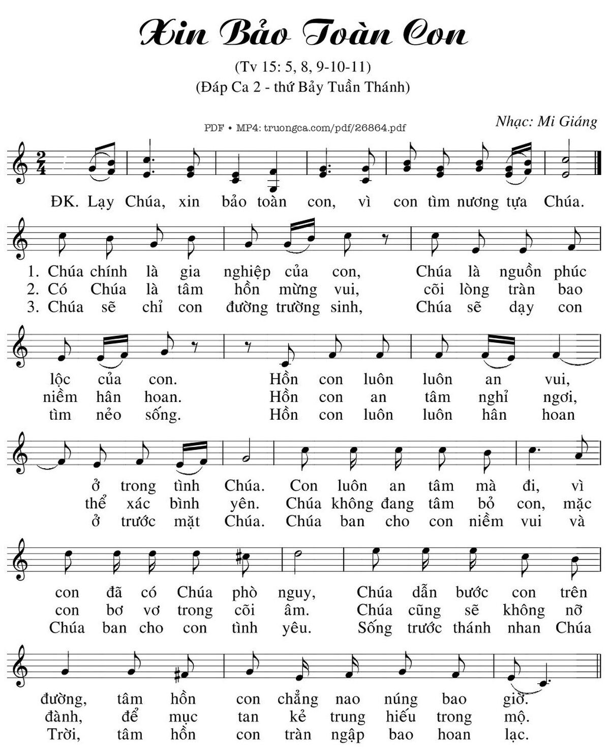 Các sheet PDF tương tự Thánh Vịnh 15, Xin Bảo Toàn Con: