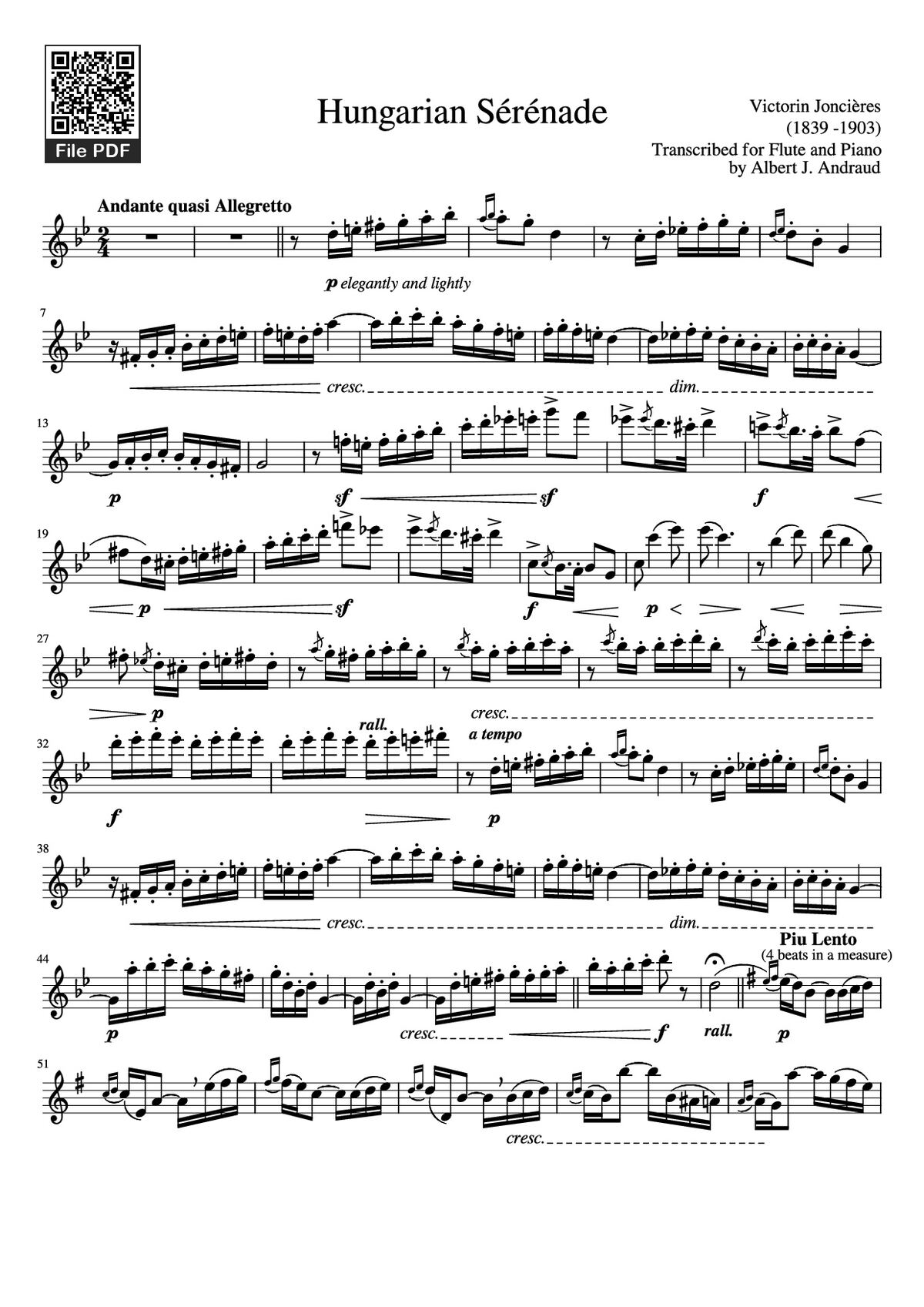 Download and print in PDF or MIDI free sheet music of Hungarian Serenade, Op.502 - Charles Fradel for Hungarian Serenade, Op.502 by Charles Fradel arranged by averyrandomperson for Flute