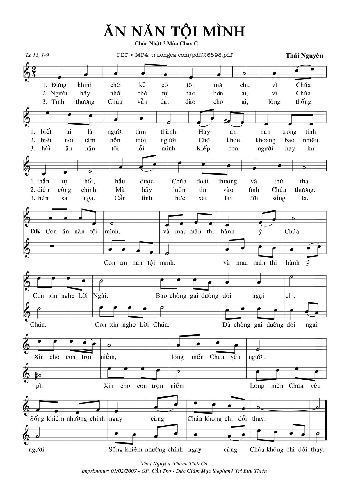 Các sheet PDF tương tự Ăn Năn Tội Mình: