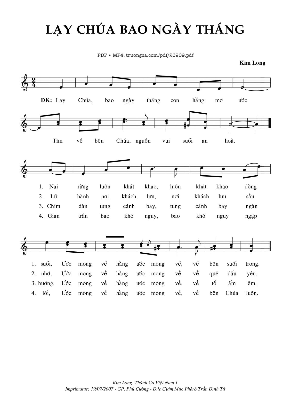 Kim Long Lạy Chúa bao ngày tháng con hằng mơ ước [PDF] [Sheet] [Lời H.A] [Mp4/Midi]