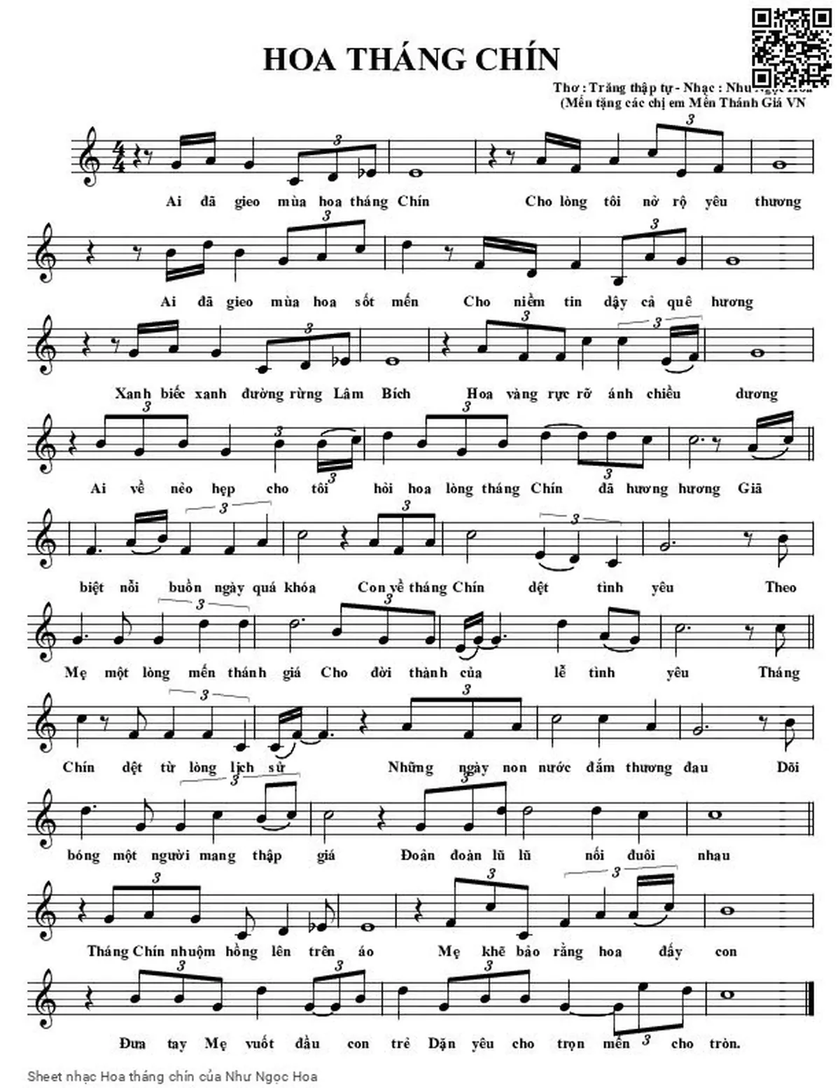 Như Ngọc Hoa Ai đã gieo mùa hoa chín Cho lòng tôi nỡ rộ yêu thương [PDF] [Sheet] [Lời H.A] [Mp4/Midi]